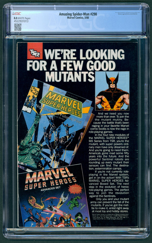 Amazing Spider-Man #298 CGC 8.0 1st App. of Eddie Brock in cameo