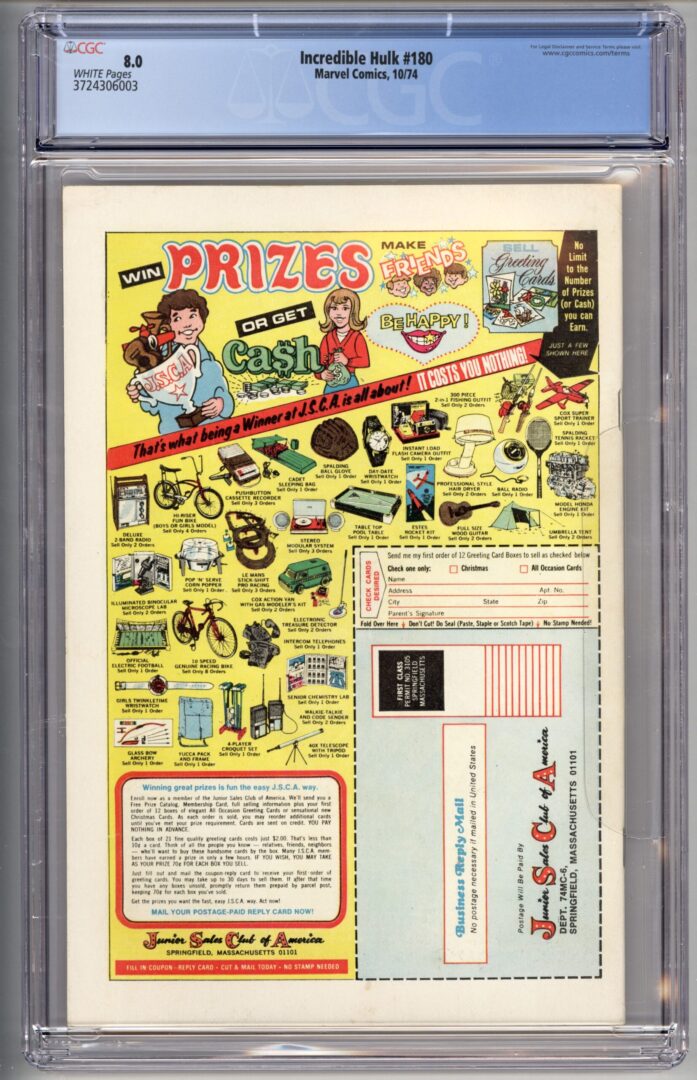 Incredible Hulk #180 CGC 8.0 1st brief appearance of Wolverine