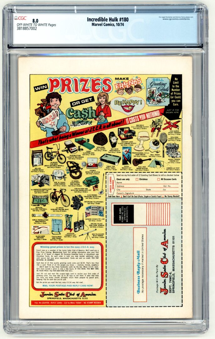 Incredible Hulk #180 CGC 8.0 1st brief appearance of Wolverine