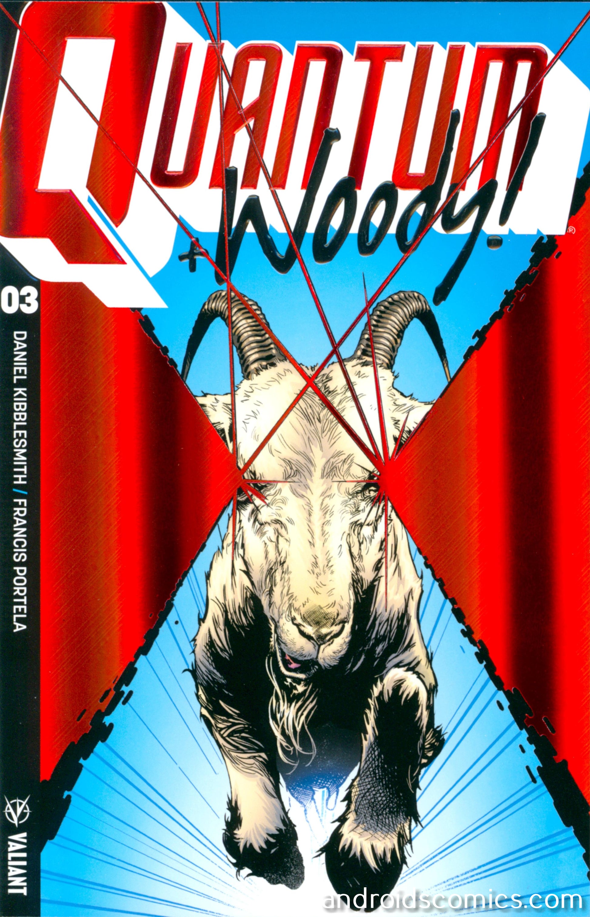 Because you demanded it! The Goat returns! If you add them all up, this would be Quantum and Woody's 50th issue! What better time to answer the eternal question: 'Whatever happened to the Goat, anyway?' At last, the whole saga of Dr. Derek Henderson's transformation from brilliant physicist and beloved father into a barnyard animal of unimaginable power can finally be told and all of his secrets revealed, beginning with the long-awaited birth of the Goat's baby! And the Eisner for 'Best Goat Birth Scene' goes to writer extraordinaire Daniel Kibblesmith (The Late Show with Stephen Colbert) and special guest artist Francis Portela (FAITH)! Don't miss the staggering spectacle as the entire Valiant Universe stands on the cusp of a milestone moment in the spectacular goatacular of 2018!